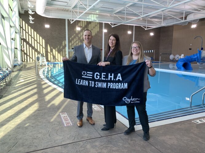On Thursday, Ogden City officials and Government Employees Health Association (GEHA) officials gathered at the Marshall N. White Community Center to announce the return of GEHA’s Learn to Swim Program. Last year, a $23,000 grant allowed for 300 kids to learn how to swim with equipment costs and everything covered.