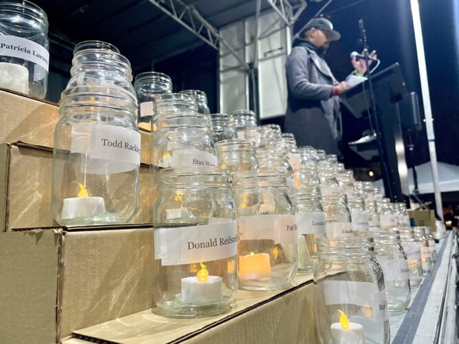As he read their names aloud Thursday night in front of a somber crowd illuminated by candlelight, Herbert Elliot — co-chair of the consumer advisory board for the Fourth Street Clinic, which provides health care for the homeless in Salt Lake City — dropped a small stone into a glass jar for each name.