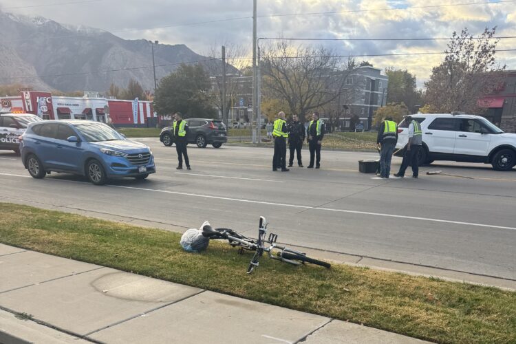 Police respond to a vehicle-versus-bicycle accident in Ogden on Thursday, Nov. 6, 2025. One person was injured and required a partial ankle amputation.OGDEN — One person was injured following a vehicle-versus-bicycle accident Thursday morning.