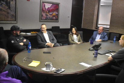 - (From left) Snowbasin Resort Chief Operating Officer and General Manager Davy Ratchford, Ogden Mayor Ben Nadolski, Visit Ogden President and CEO Sara Toliver and Weber County Commissioner Jim Harvey speak with the editorial board about the Ogden delegation’s trip to Italy to learn about hosting the Olympics at the Standard-Examiner in Ogden on Monday, Feb. 2, 2026.