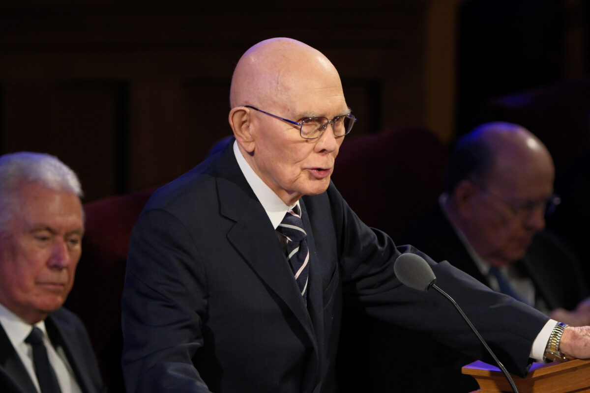 Church President Dallin H. Oaks speaks at the funeral for President Jeffrey R. Holland, President of the Quorum of the Twelve Apostles of The Church of Jesus Christ of Latter-day Saints, in the Tabernacle on Temple Square in Salt Lake City, Utah, on Wednesday, Dec. 31, 2025.