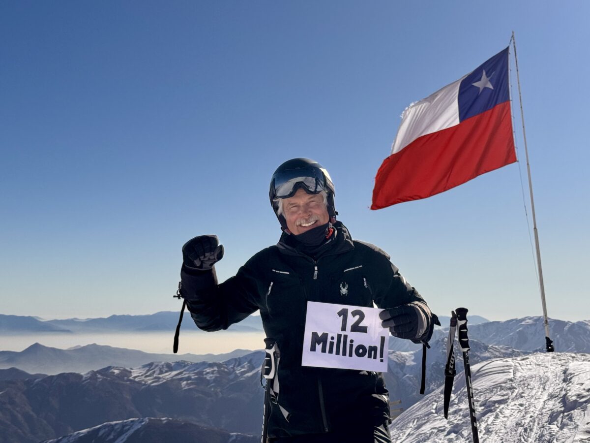 Thomas "Racer Tom" Hart of North Ogden celebrates a milestone in Chile in August 2025 on his way to breaking the world record for "greatest vertical distance skiing downhill in one year (male)" for the fourth time.