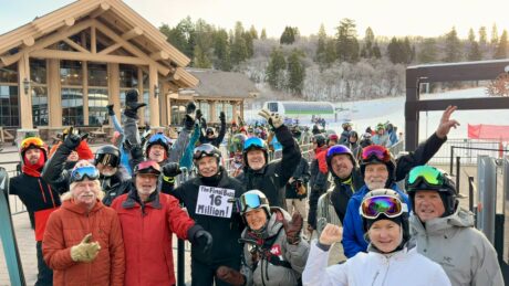 Thomas Hart celebrates the feat of skiing 4 million vertical feet on Tuesday, Feb. 4, 2025.