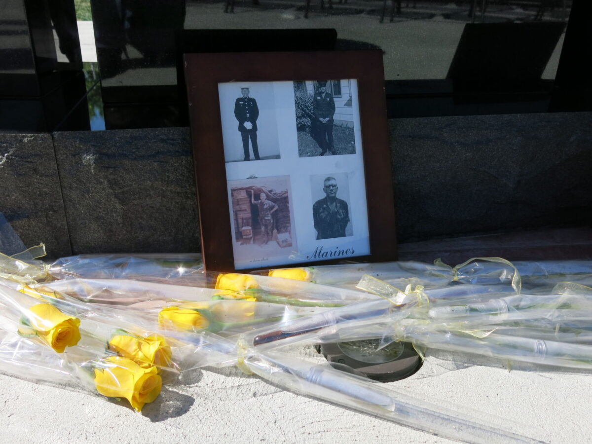 After the monument was unveiled, one-by-one the Gold Star Families of Utahns who died in the service of their country stepped up to the microphone, identified their family member, and then laid yellow roses at the base of the monument.