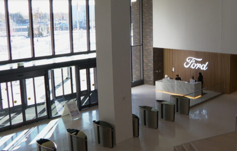 DEARBORN, Mich. (AP) — Ford Motor Co.'s new headquarters, the carmaker's first central office switch since Dwight Eisenhower was president, is double the size of its old one with room for twice as many employees.