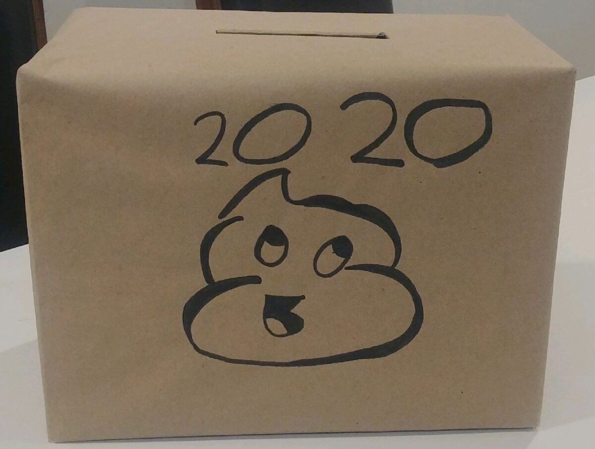 She explained she made a box with a slit in the top and covered it with brown paper so there’s no way to open it. Her artistic daughter drew “2020” and a pile of poop on the side of it. “I like writing to release what’s inside. It’s good for the kids too. So we’re writing down on slips of paper all the crappy things that happened this year and putting them in the box,” she said. They plan to burn the box on New Years’ Eve in their fire pit. “Our family just needs a fresh start, a visible, tangible new beginning. We’ll burn it. It’s gone. We start over,” she said.