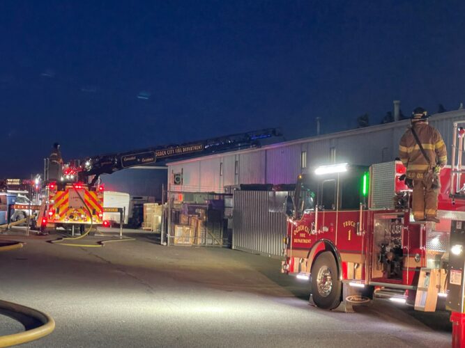 According to a press release from the Ogden City Fire Department, crews were summoned to a reported fire originating from the roof of an industrial building located at 2600 Industrial Drive around 6:50 a.m. Tuesday.