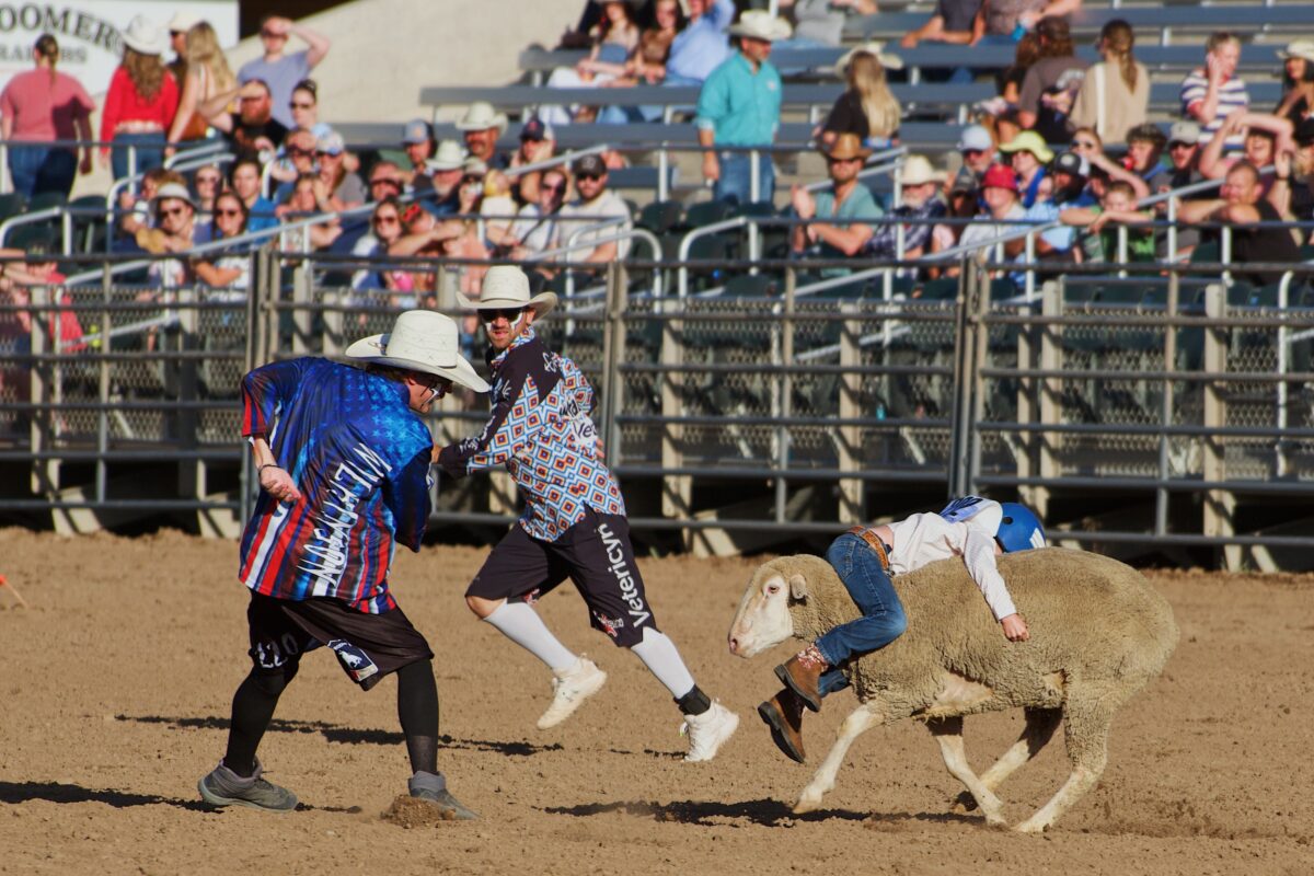 - Rodeo clowns chase after a boy on a sheep during a mutton busting event at the Ogden Pioneer Days Rodeo on Wednesday, July 23, 2025.