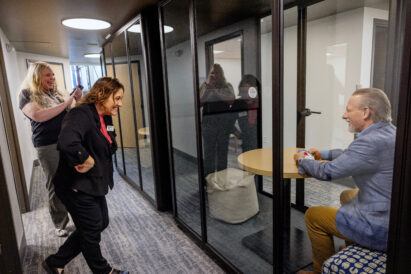 Not only did Comcast increase internet access, it invested in the campus’s Nonprofit Connection Center which includes innovative “privacy pods” where leaders access a quiet, professional space to host a Zoom meeting or jump on a phone call.