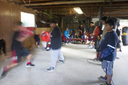 Among the charges at Los Gallitos gym is trainer Lopez’s son, Lalo Jr., 10, who fights at around 60 pounds. With sometimes as many as 15 boxers packed inside, the gym is full. Monday through Thursday are after-school training evenings, except when there’s an amateur card or tournament up. “Then we train every single day,” Lopez said.