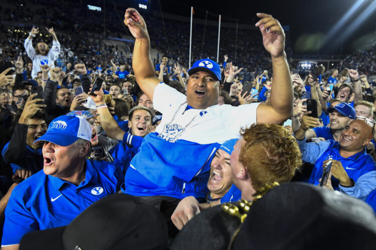 A crowd holds BYU football head coach Kalani Sitake after his team defeated Utah on Saturday, Sept. 11, 2021, in Provo.PROVO — BYU has worked to build itself into a team with a tough defense and efficient offense, following a blueprint laid down by archrival Utah.