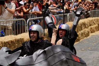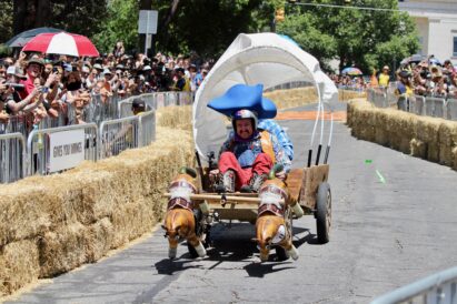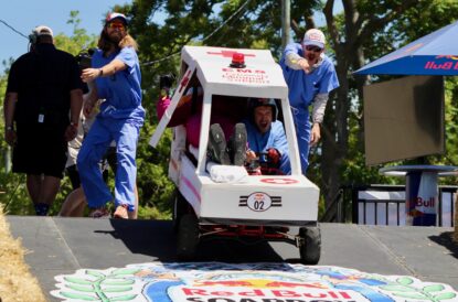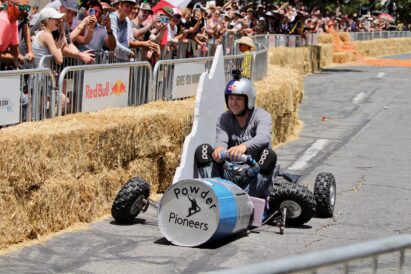 Red Bull Soapbox Race is a race of nonmotorized carts down a custom course that consists of turns, jumps and obstacles. Teams of up to five members must perform a skit before propelling their cart down the course. Their driver then navigates obstacles in hopes of logging the fastest times. Creative themes are displayed from a variety of unique homemade soapbox carts