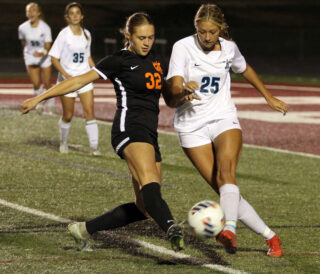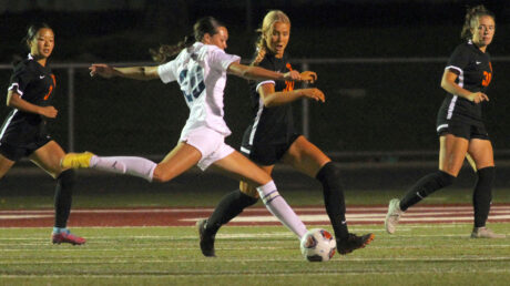 Ruth Larsen doubled the Tigers’ lead with a goal from about 25 yards out on the right side of the field, the ball ending up in the opposite side netting of the goal, very similar to her first-minute goal Saturday in the 2-0 quarterfinal win at Morgan.