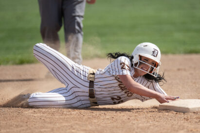- Fremont’s Saige Steele dives into a base in a game against Davis on Tuesday, April 30, 2024, in Kaysville.