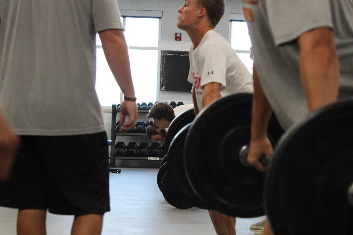 West Field High football players participate during morning weightlifting sessions on Wednesday, Aug. 28, 2024, in Taylor.