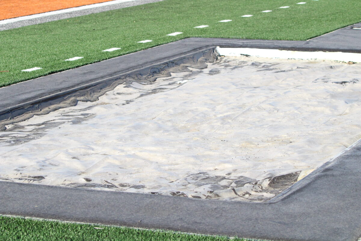 Alongside the track, the stadium includes a single long jump pit located behind the north end zone.