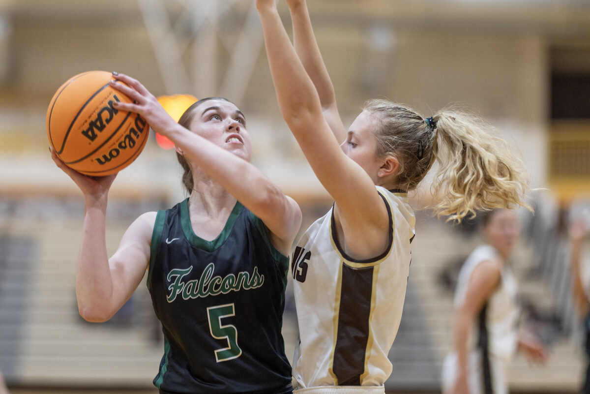 - Davis High’s Chloe Peery (2) swings a pass as Clearfield’s Izzy Wyaskett (11) defends in a nonregion game Thursday, Dec. 4, 2025, in Kaysville.