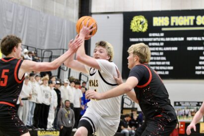 - Roy High’s Boston Greenhalgh, left, swerves between Park City’s Mason Marchetti, left, and Canyon Corcoran, right, during a nonregion boys basketball contest against Park City on Wednesday, Dec. 10, 2025, inside Ted Smith Gymnasium at Roy High School in Roy.