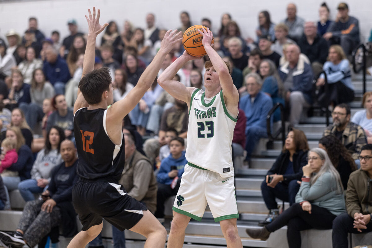 - West Field’s Drew Faddis, left, prepares to shoot as Syracuse’s Carter Robinson looks on in a game Friday, Dec. 12, 2025, in Syracuse.
