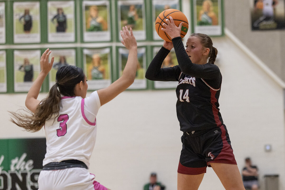 - Northridge High’s Kayla Stevenson (14) shoots over the contest of Clearfield’s Destini Gomez (3) on Tuesday, Dec. 30, 2025, in Clearfield.