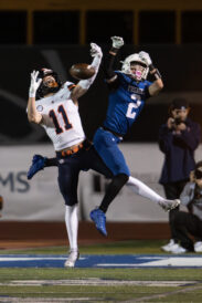 - Fremont High’s Slade Parker, right, hauls in a pass against Brighton in a 5A playoff quarterfinal Friday, Nov. 7, 2025, in Plain City.