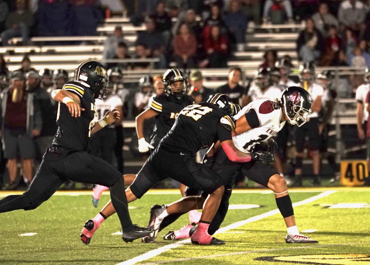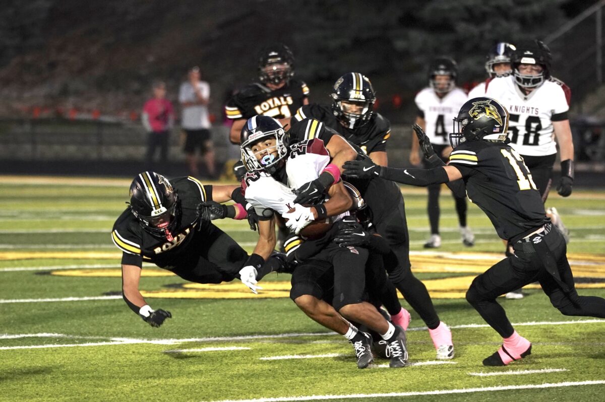 - Roy High tacklers take down Northridge receiver Dontae Dyson (22) on Friday, Oct. 3, 2025, in Roy.