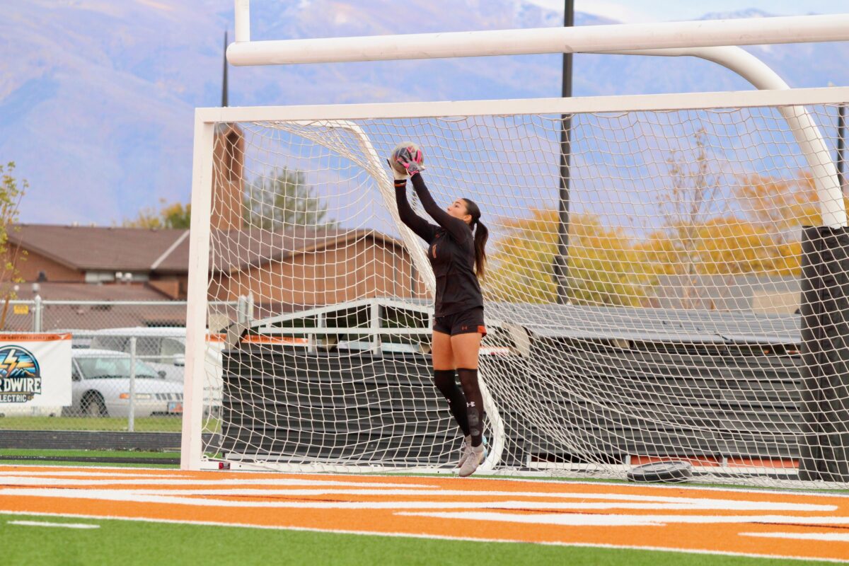 The lone region survivor, No. 11 Box Elder blanked No. 6 Hillcrest 8-0 on the back of a 4-0 start and 80 minutes of clean goaltending by senior Emma Nelson. Senior Desarae Nelson scored twice in leading the Bees to the quarterfinals at No. 3 Spanish Fork on Thursday.