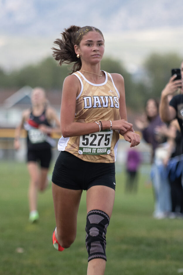- Davis High junior Isabella Cram runs in her second-place effort at the Region 1 girls cross country championship Wednesday, Oct.15, 2025, at the Weber County Fairgrounds.