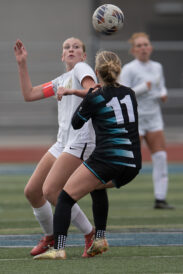 - Davis High’s Makenna Couser, left, and Farmington’s Macey Call (11) eye the soccer ball in a 6A state quarterfinal Thursday, Oct. 16, 2025, in Farmington.