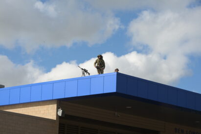- Two armed officers look out from the roof of Ben Lomond High School the 78th annual Iron Horse game on Wednesday, Oct. 15, 2025, in Ogden.