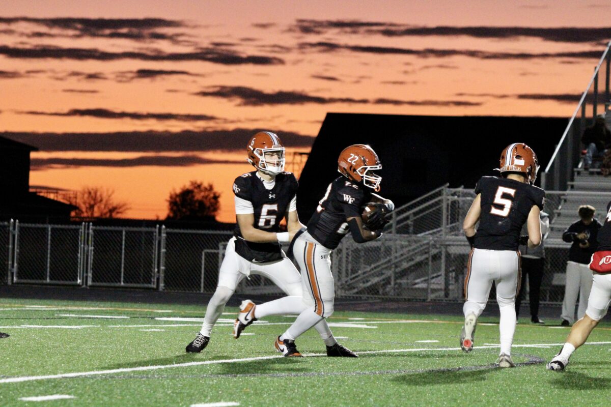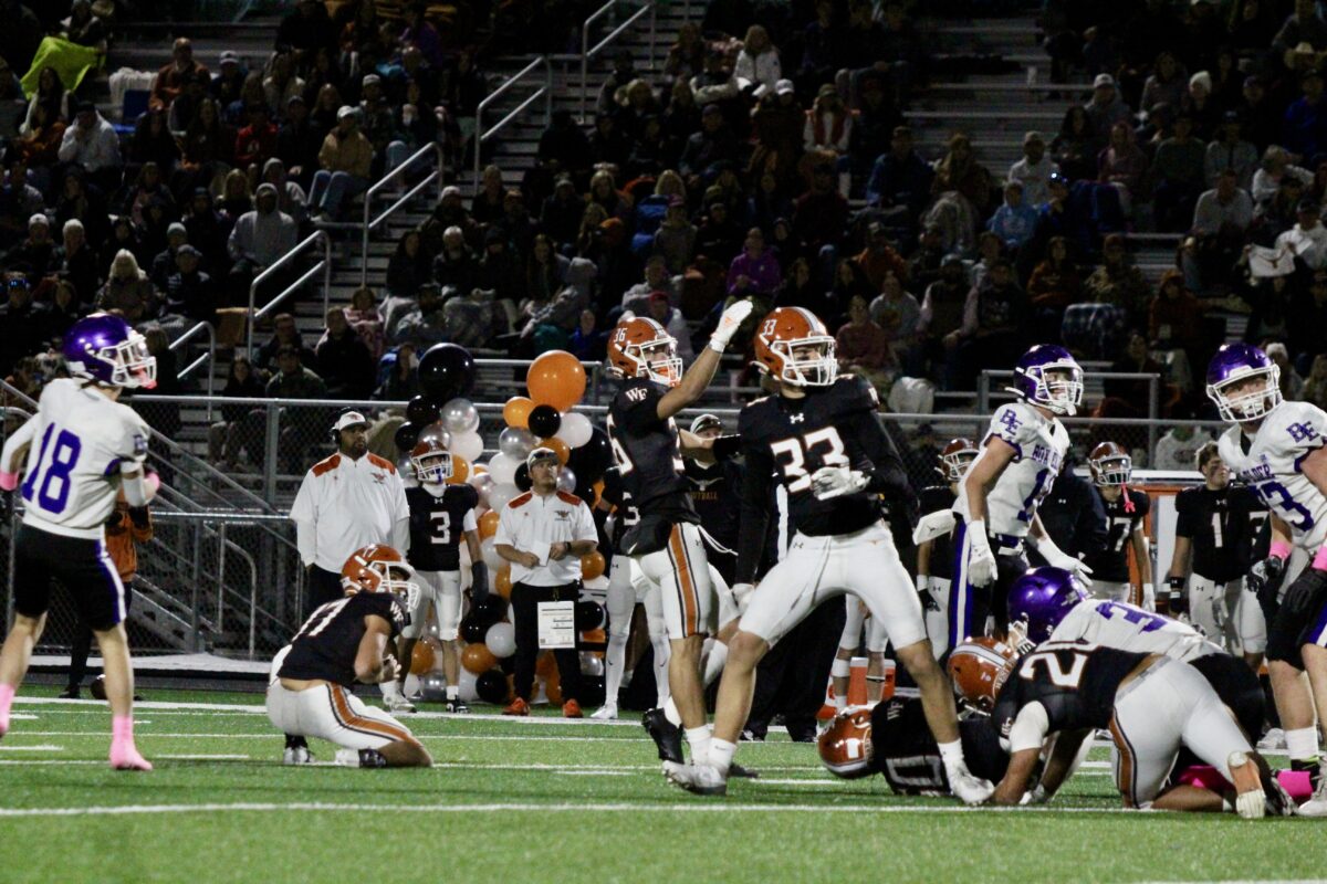 Senior wideout-kicker specialist Jaden Fowers salvaged West Field’s first drive with a 43-yard field goal after sophomore quarterback Easton Eilertson fell on his own third-down fumble. WF senior defensive end Brexton White and junior defensive back Trevyn Thomas pressured Reyes for a third-down stop on the next drive, and the Longhorns got ahold of the wheel.