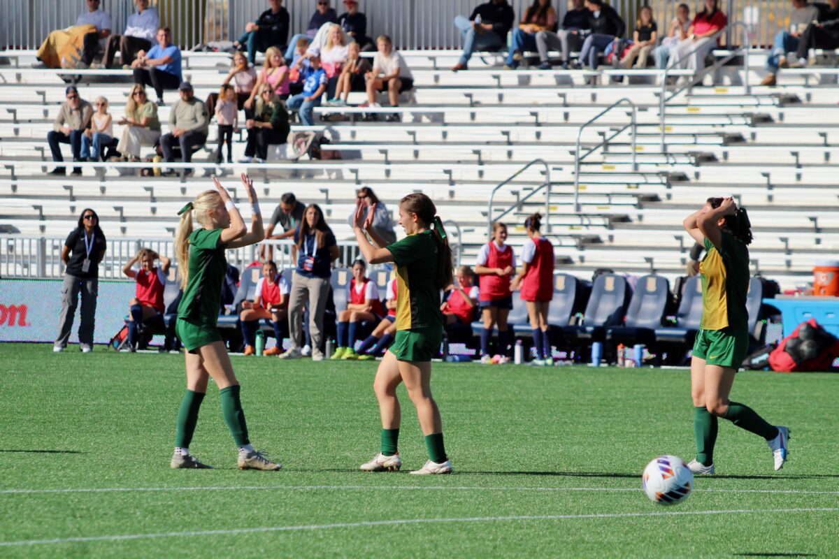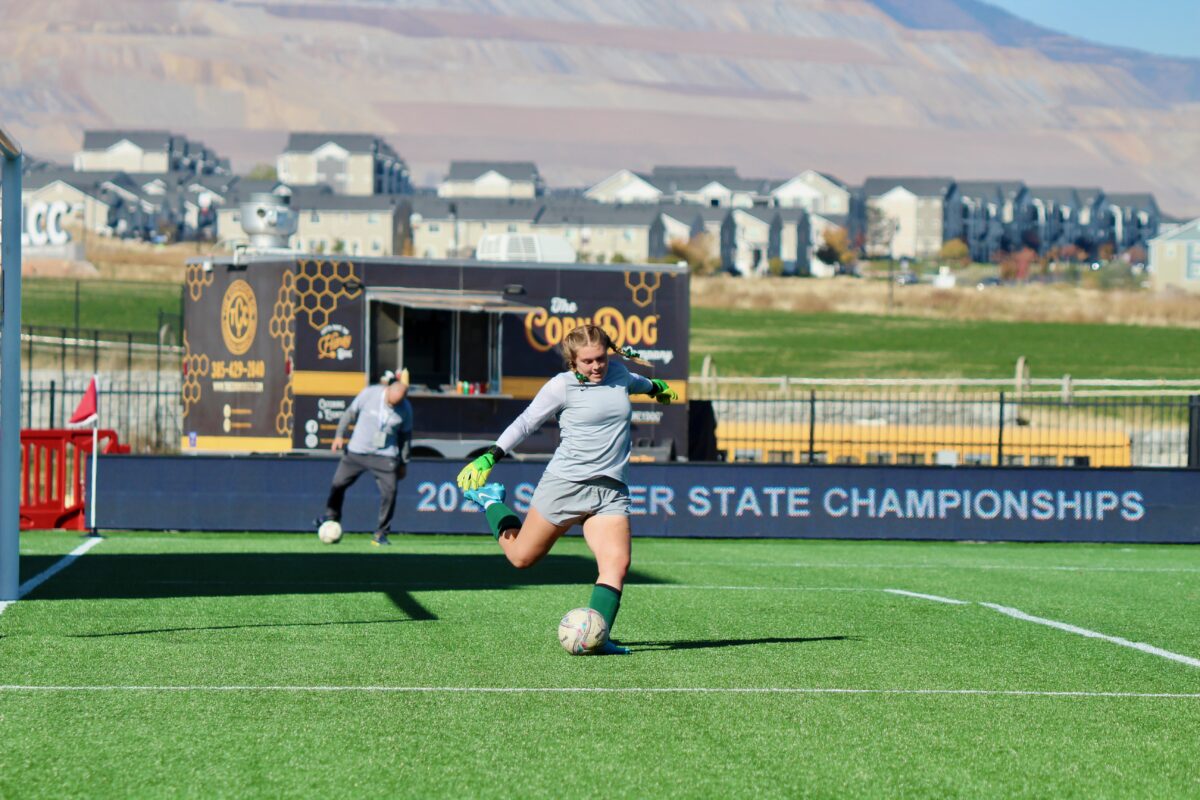 - St. Joseph’s Addison Doebler warms up during the 2A state girls soccer semifinals on Thursday, Oct. 23, 2025, at Zions Bank Stadium in Herriman.