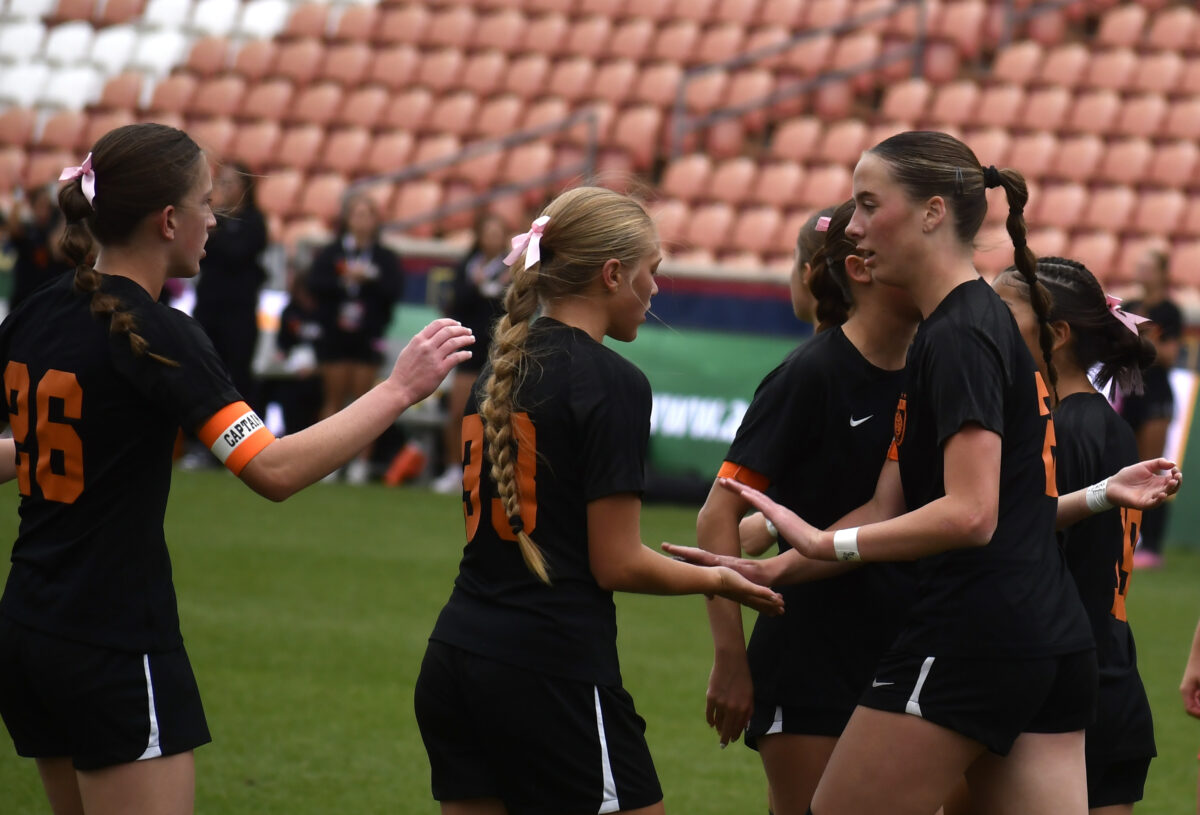 - Ogden High players slap hands with junior Elle Weston (right) after she scored a goal in the 3A girls soccer state championship match on Saturday, Oct. 25, 2025, at America First Field in Sandy.