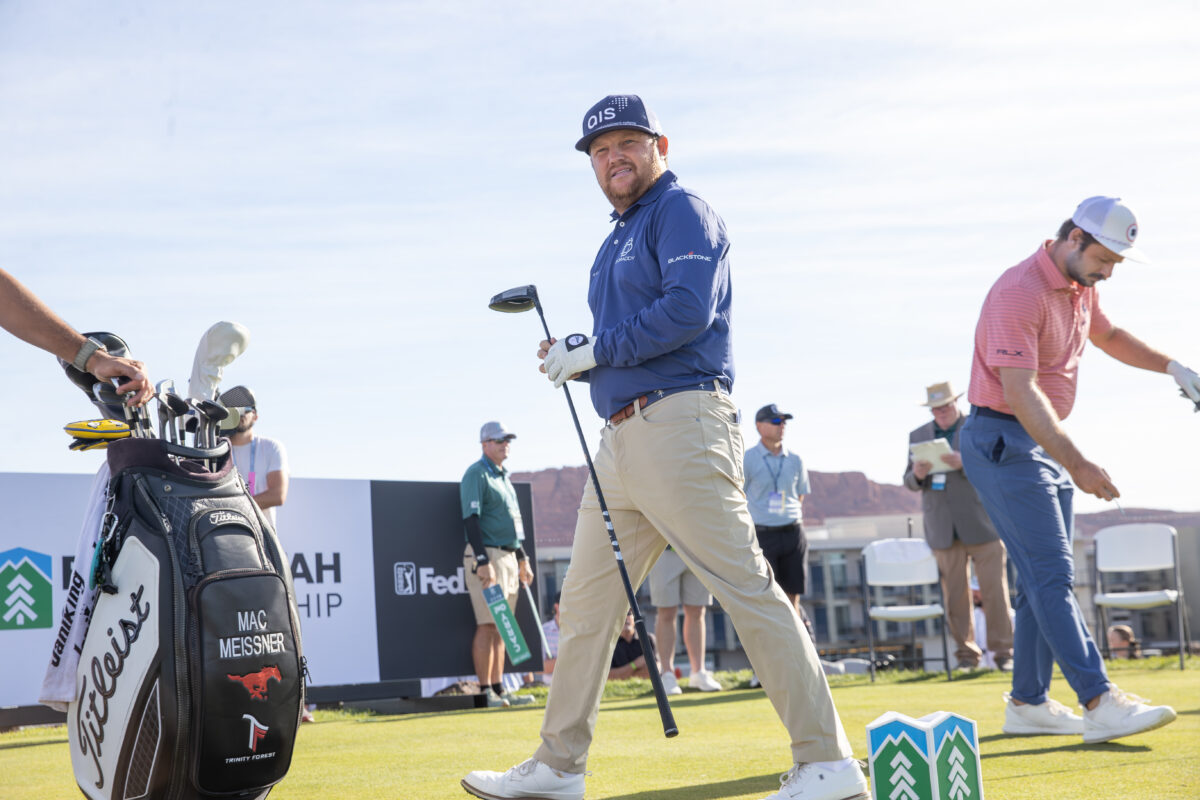 - Zac Blair walks back to his bag after teeing off on the first hole during the fourth round of the PGA Tour Bank of Utah Championship on Sunday, Oct. 26, 2025, at Black Desert Resort in Ivins.