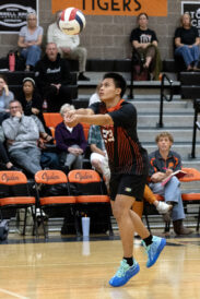 Senior libero Aiden Holbrook chipped in with two aces, three assists and 12 digs for the Tigers.