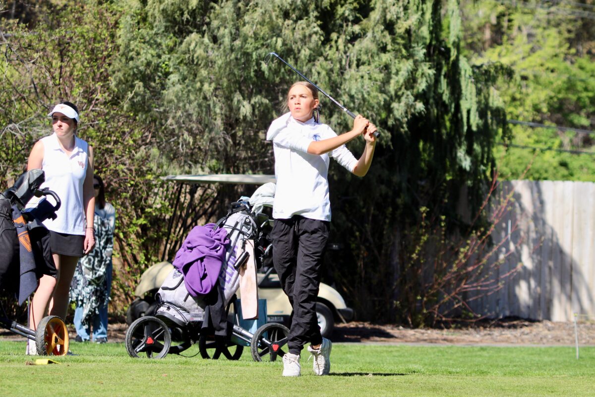 - West Field’s Jovi Purser watches her drive during a Region 5 girls golf tournament on Tuesday, April 7, 2026, at Schneiter’s Riverside Golf Course in Riverside.