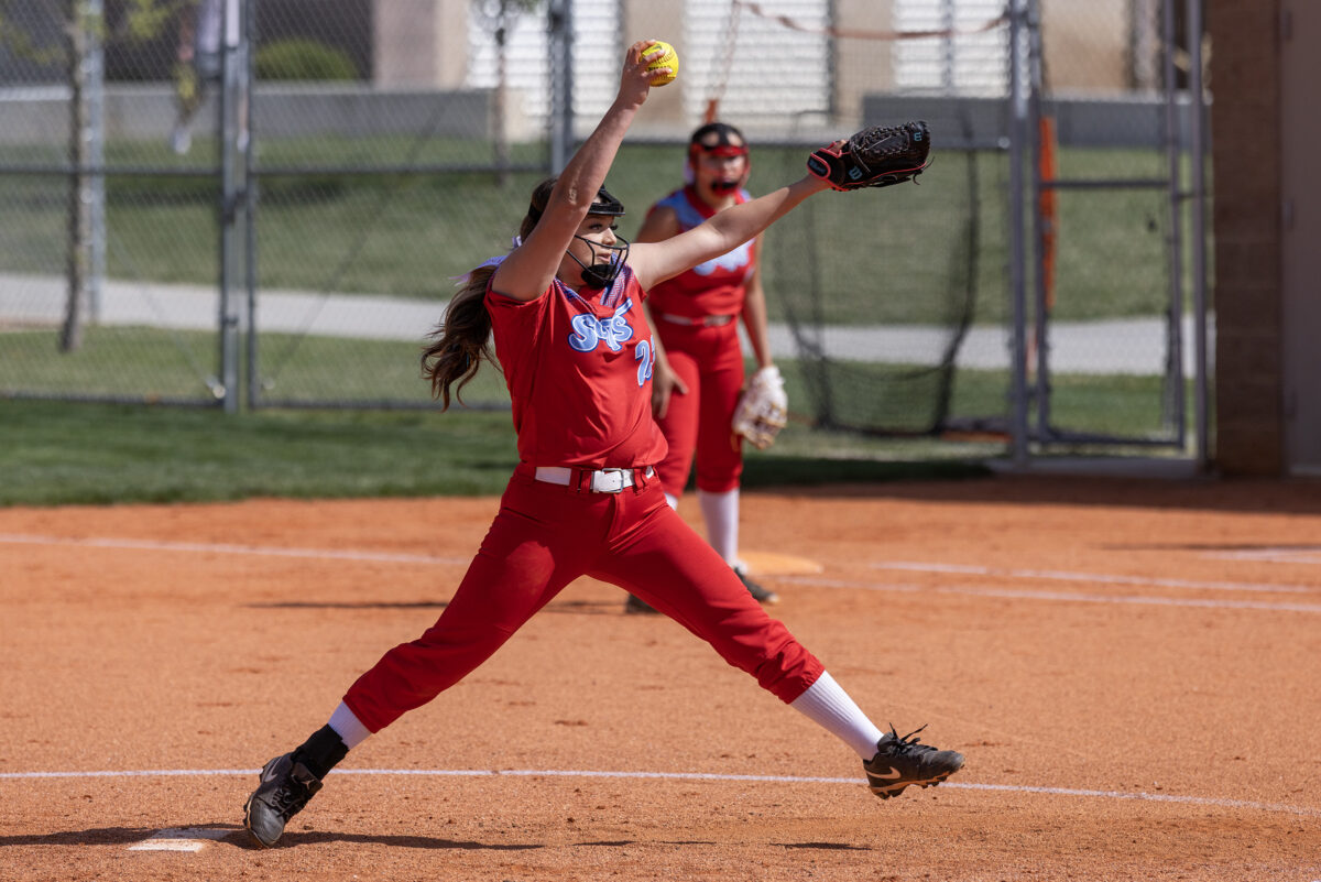 - Ben Lomond pitcher Amelya Dominguez winds up to pitch during a Region 12 prep softball game against Ogden on Thursday, April 9, 2026, in Ogden.