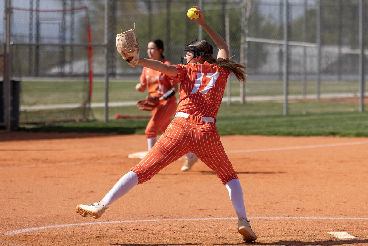 - Ogden High’s Jill Wood winds up to pitch during a Region 12 prep softball game against Ben Lomond on Thursday, April 9, 2026, in Ogden.