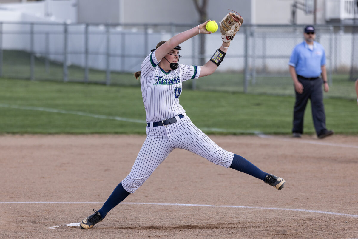 - Syracuse High’s Ally Matthews winds to throw a pitch to a Davis batter during a Region 1 softball game Friday, April 10, 2026, in Syracuse.