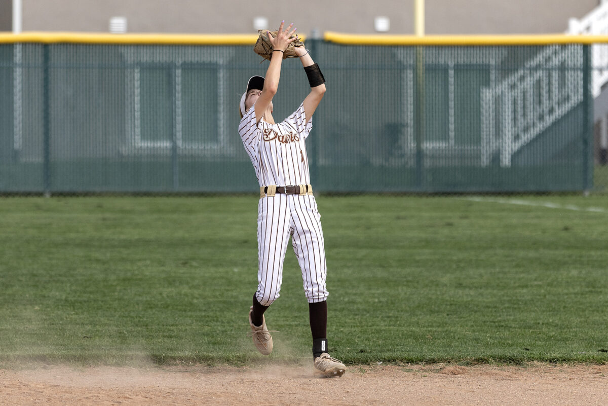 - Davis High’s Adelyn Turpin secures an out on a Syracuse pop fly during a Region 1 softball game Friday, April 10, 2026, in Syracuse.