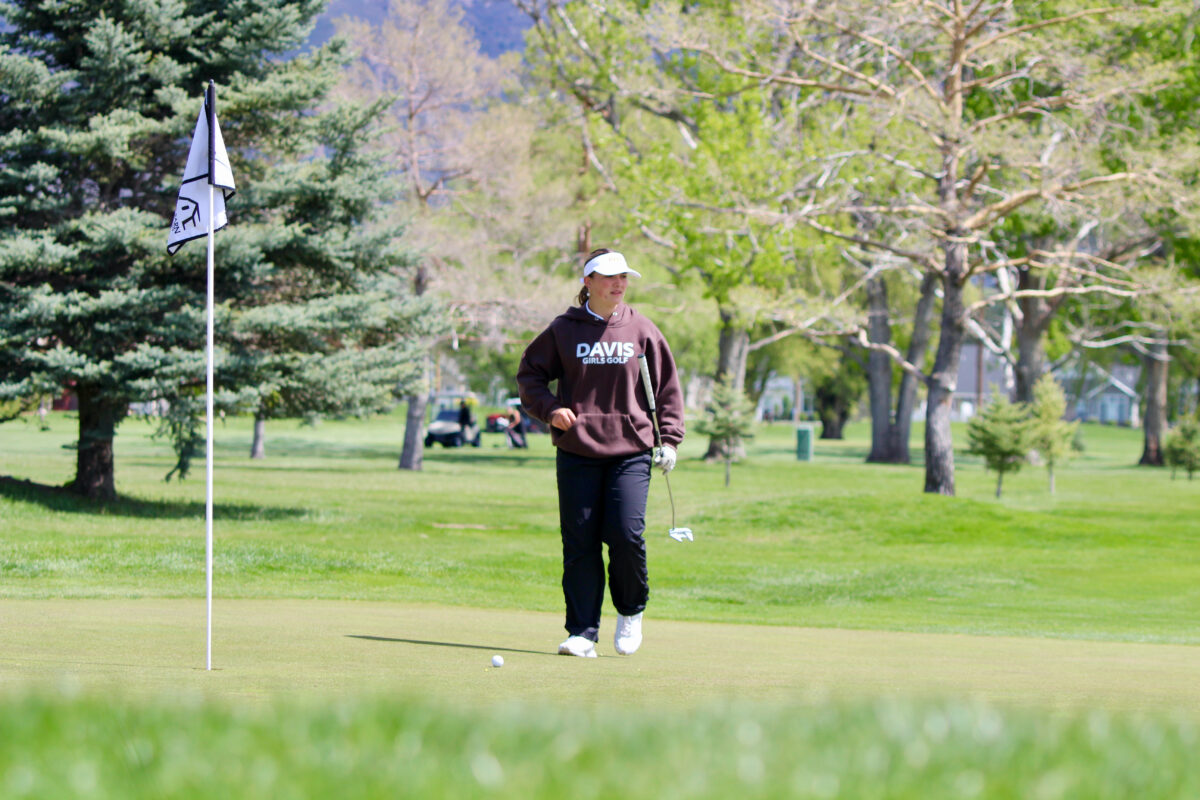 - Davis High’s Sage Beus walks across the 16th green during a Region 1 girls golf tournament on Monday, April 13, 2026, at The Barn Golf Course in Ogden.