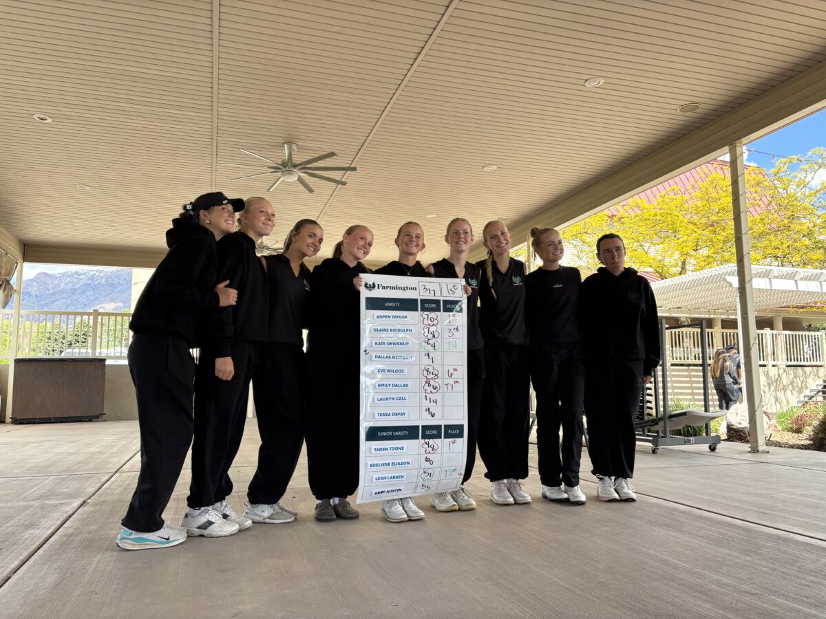 - The Farmington High girls golf team poses with its first-place result following a region girls golf tournament on Monday, April 13, 2026, at The Barn Golf Course in Ogden.