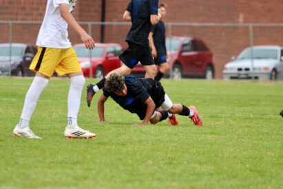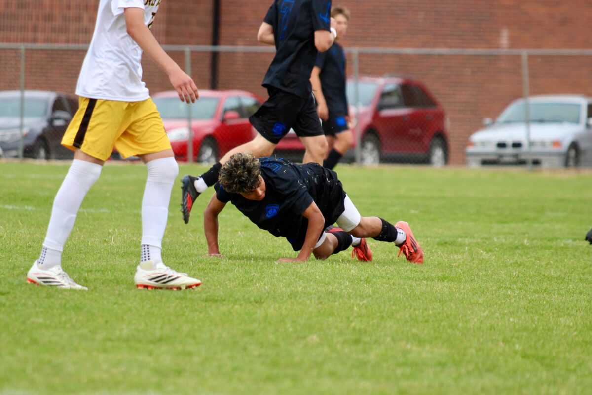 - Bonneville’s Gabe Noriega lifts himself off the turf during a region boys soccer contest against Roy High on Tuesday, April 21, 2026, at Bonneville High School in Washington Terrace.