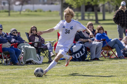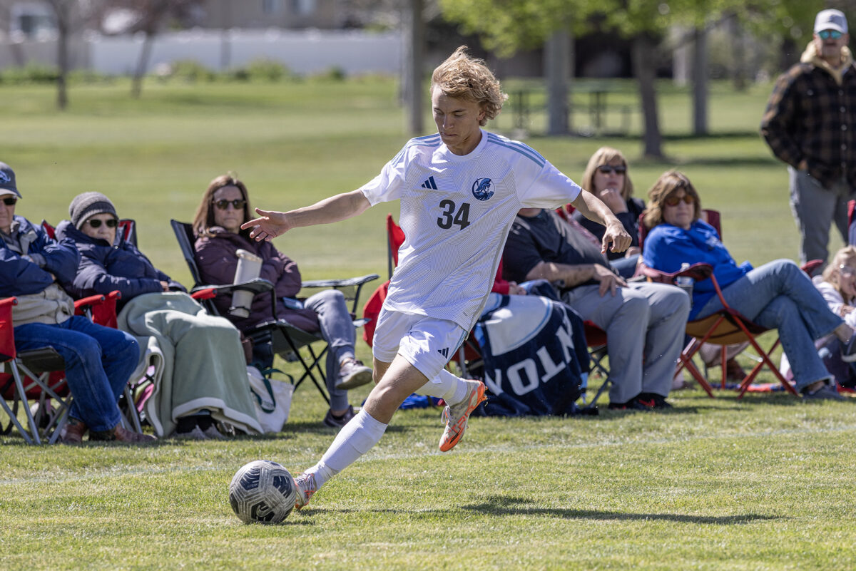 - Layton High’s Cole Sudduth rears back to kick the ball during a Region 1 boys soccer match against Davis on Wednesday, April 22, 2026, in Kaysville.