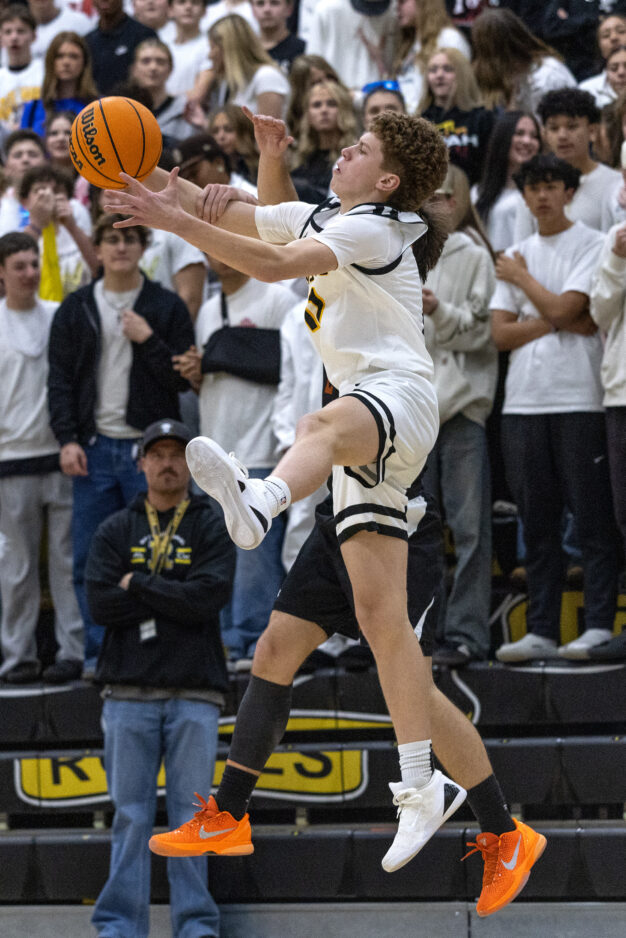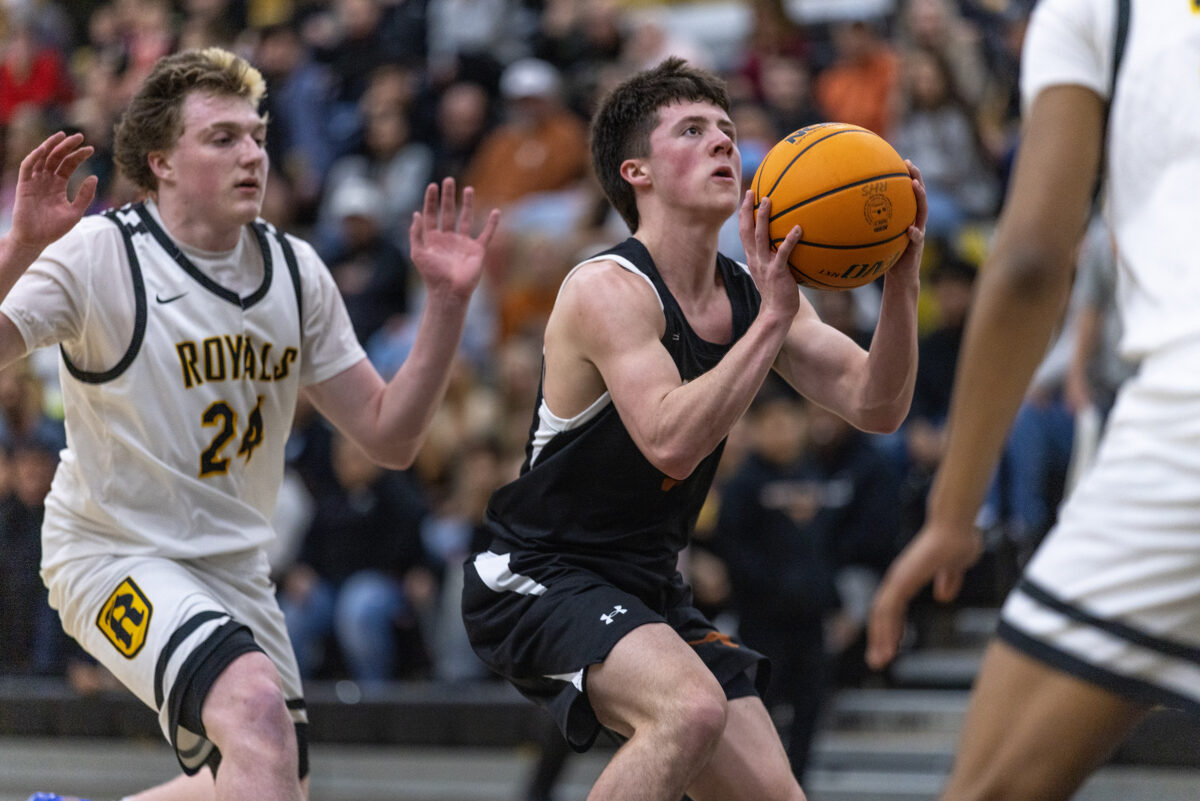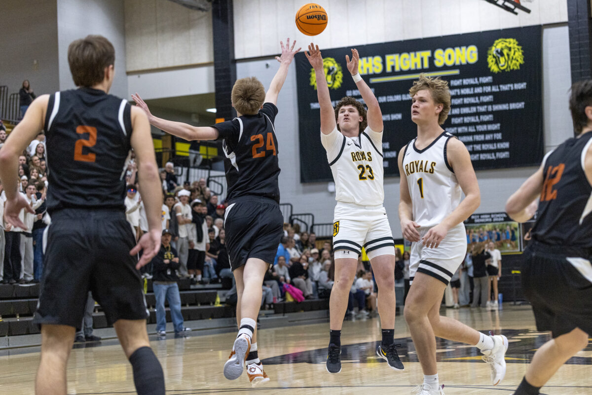 - Roy High’s Jesse Jones (23) lets a 3-pointer fly over West Field’s Drew Faddis (24) during a Region 5 boys basketball game Wednesday, Feb. 11, 2026, in Roy.