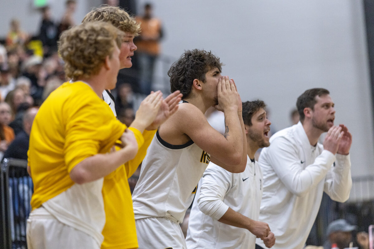 - Roy High coaches and players cheer from the bench during a Region 5 boys basketball game against West Field on Wednesday, Feb. 11, 2026, in Roy.