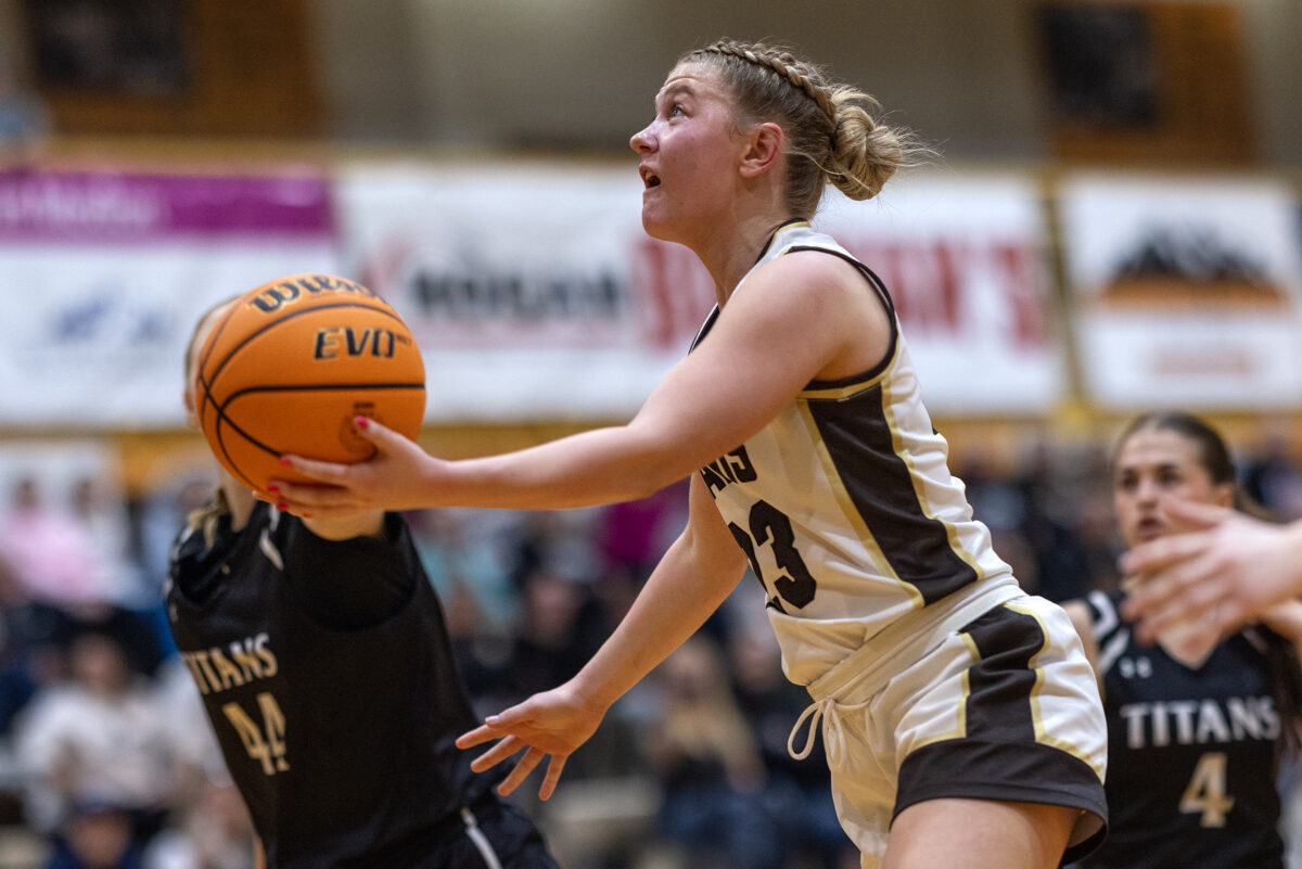 - Davis High’s Emy Richards scoops a shot against Syracuse in a Region 1 girls basketball game Friday, Feb. 13, 2026, in Kaysville.