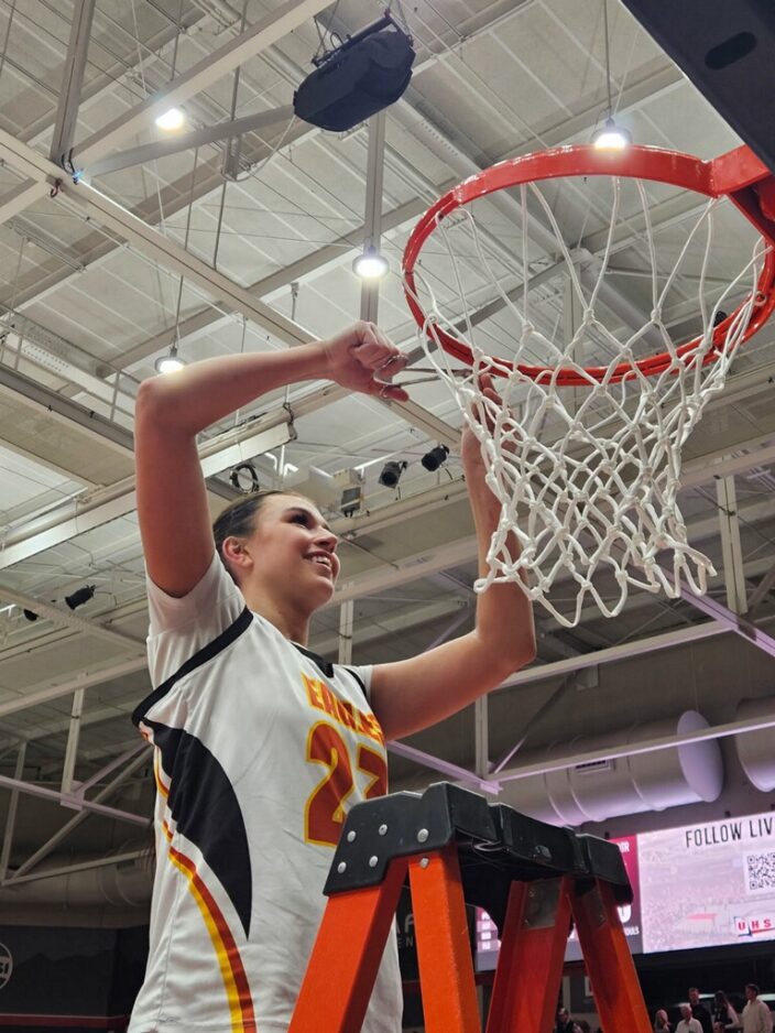 - Layton Christian’s Ava Smith cuts down the nets after defeating Morgan High 44-40 on Saturday, Feb. 21, 2026, at Southern Utah University in Cedar City.