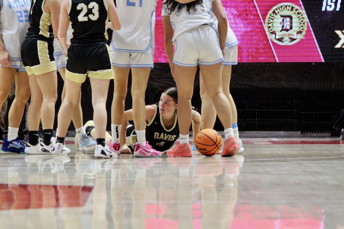 - Davis High player Kate Willard picks herself up off the floor against Westlake during the 6A girls basketball quarterfinals Wednesday, Feb. 25, 2026, at the Huntsman Center in Salt Lake City.