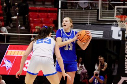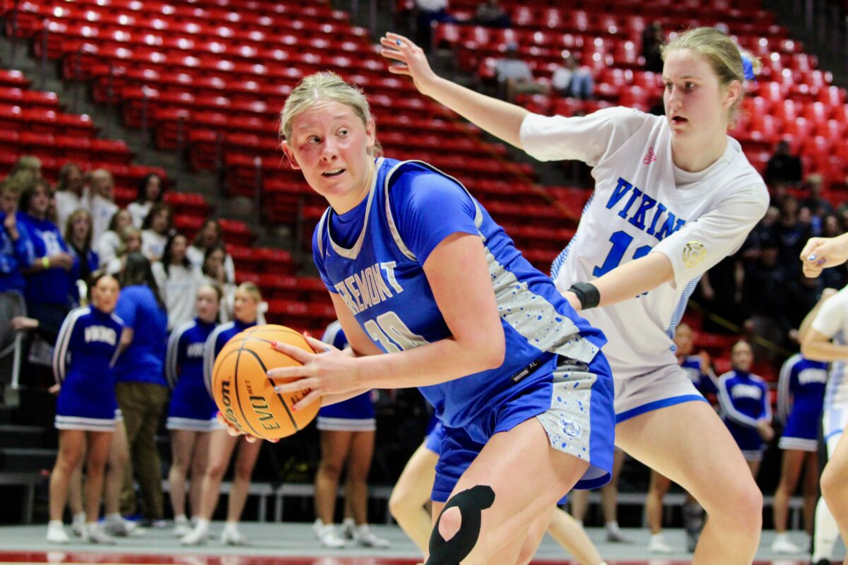 Fremont junior center Abby Christensen managed 2 of 7 shots from the field in the first half, having a difficult time navigating the Viking defense as she matched up against 6-foot-6 sophomore center Sutton Villa.